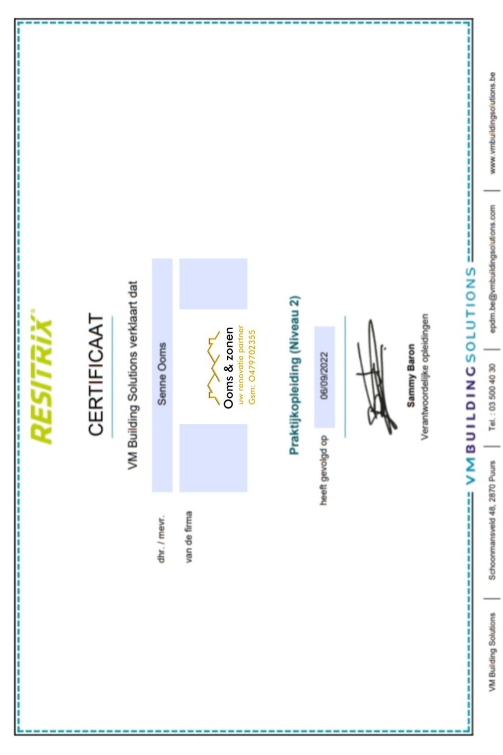 Ook voor al uw dakwerken kan u terecht bij Ooms & zonen om ook hier de hoogst mogelijke kwaliteit te kunnen afleveren zijn Bart en Senne gecertificeerde plaatsers voor dakbedekking in resitrix en het plaatsen van velux dakramen.